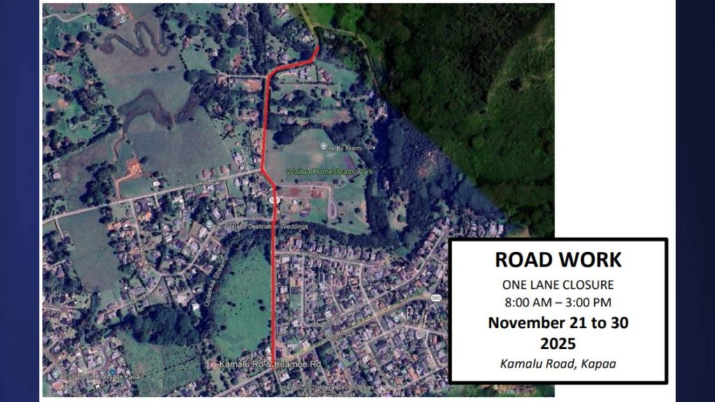 Lane closures scheduled for Kamalu Road beginning this week in Kapa‘a