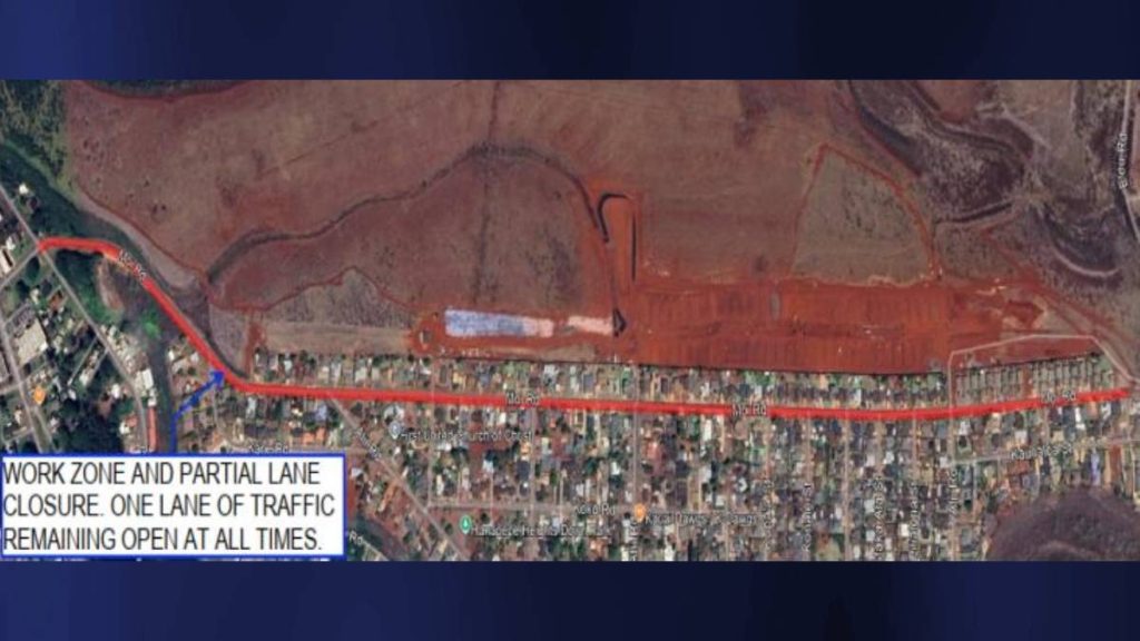 Lane closures scheduled along Mōʻi Road in Hanapēpē