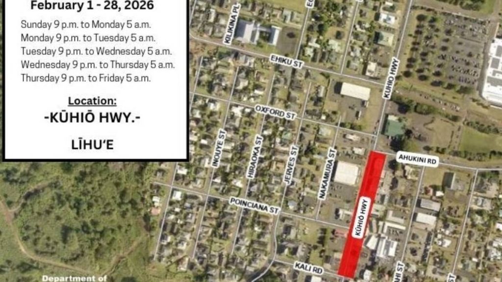Single lane closures scheduled next week for Ala Kinoiki Road in Kōloa