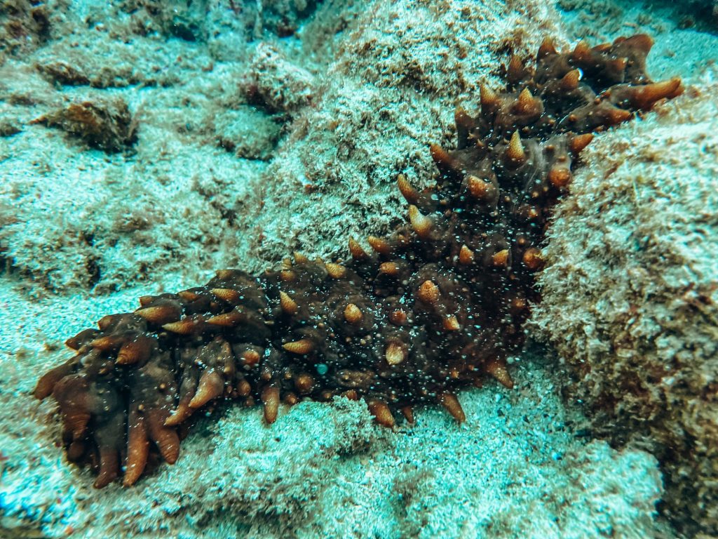 Anderson and Leichliter back-rolled into the ocean, descended 45 feet to the reef and almost immediately spotted a large Hawaiian spiky cucumber. Anderson gently scooped the