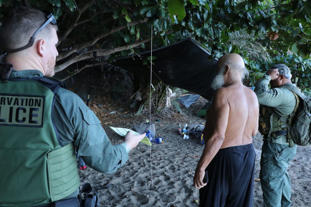 A team of four officers from the state Division of Conservation and Resources Enforcement flew into Kalalau yesterday to conduct a “sweep” of the beach and the valley.