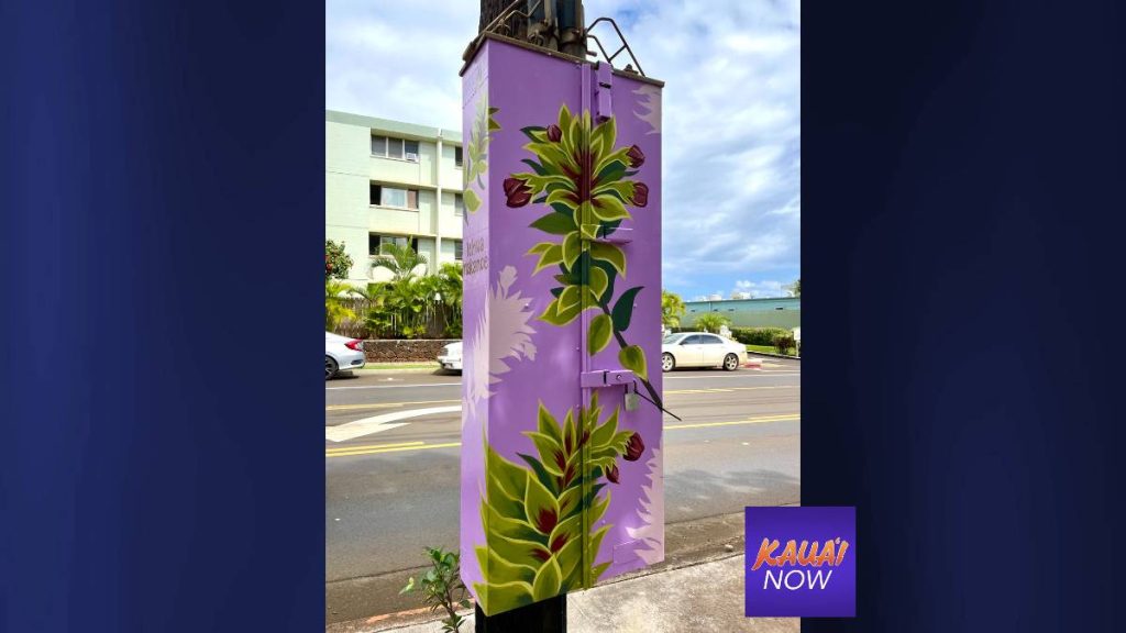 Ka‘iakapu and two other muralists, over the course of several years, have painted native flora and fauna on nine Hawaiian Telcom fiber distribution hubs along Rice Street.