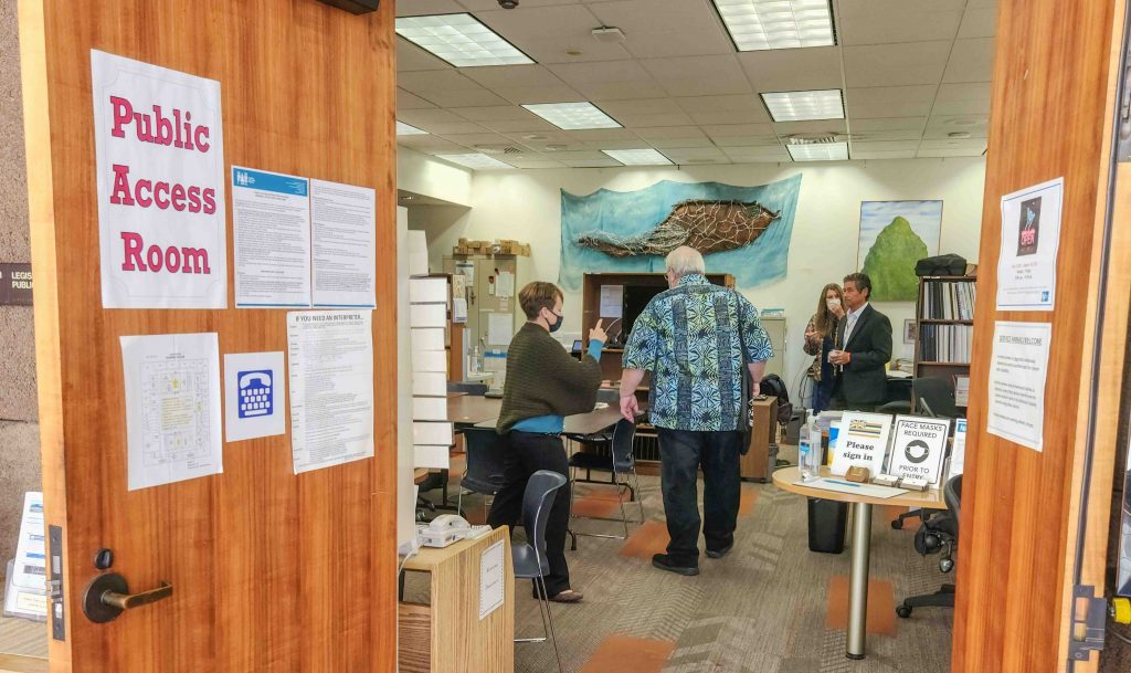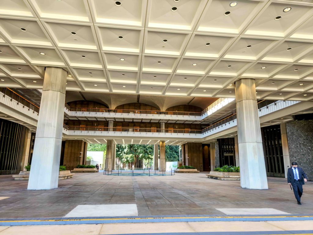 There were the conversations, phone calls, handshakes and rustling papers you’d expect to see and hear in preparation for the opening of the session, including a janitor in a blue aloha shirt shining the fourth-floor railing that overlooks the rotunda.
