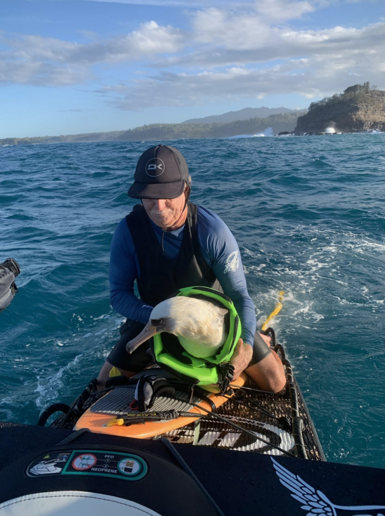 On Dec. 26, a Laysan Albatros was found waterlogged and struggling in waters off of the refuge was rescued. The rescuers were able to safely capture the albatross and bring her to the Kaiakea Fire Station, where Save Our Shearwaters staff collected the bird.