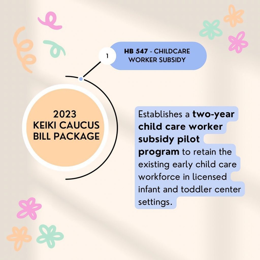 - House Bill 547, which would establish a two-year infant and toddler child care worker subsidy pilot program to assist in retaining the state’s existing child care workforce.