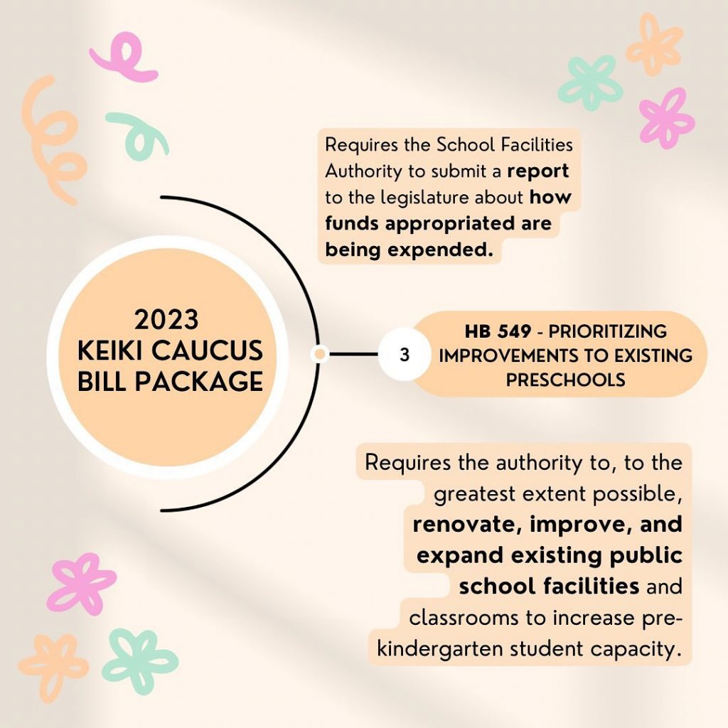 - House Bill 549, which would require the state’s School Facilities Authority to renovate, improve and expand existing public school facilities and classrooms to increase pre-kindergarten student capacity.