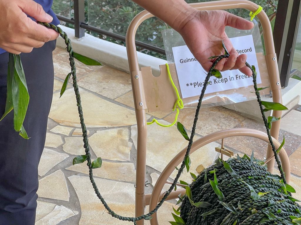 As the resort attempts to beat India’s record, they have been holding lei making classes every day at 10 a.m. in the resort’s foyer, garnering anywhere from one to 17 guests. After learning how to twist ti leaves together, guests have the opportunity to contribute to the spool.