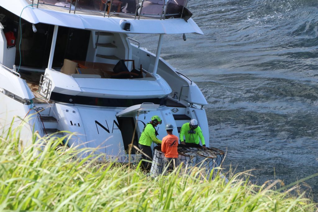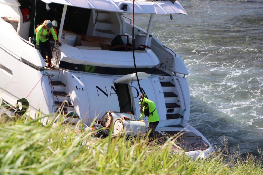 Even before the Coast Guard and Department of Land and Natural Resources were notified by the vessel’s owner that he couldn’t pay for defueling or salvage of the 94-foot-long yacht, discussions and planning were already underway between the agencies and contractors, Rocheleau said.