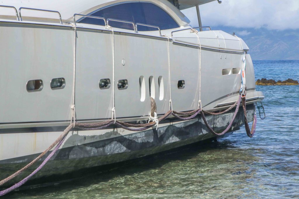 The multimillion-dollar yacht had suffered severe holes in the hull during the days it was grounded, with the rough surf pounding it repeatedly against the rocks of the shoreline.