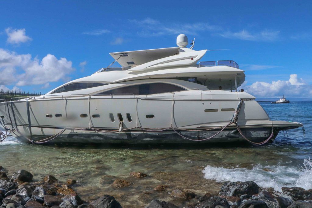 It was the end to an ordeal that began nearly two weeks ago when the yacht grounded just outside the Honolua-Mokulē‘ia Bay Marine Life Conservation District. Although the area has day-use moorings with a time limit of two hours, yacht owner Jim Jones told media that he didn’t know the rules and stayed overnight with his family when one of the lines snapped and the boat hit the rocks.