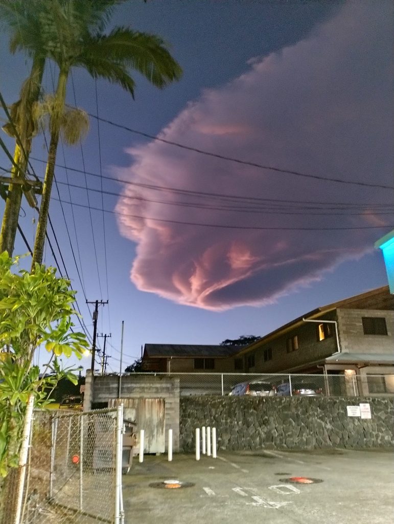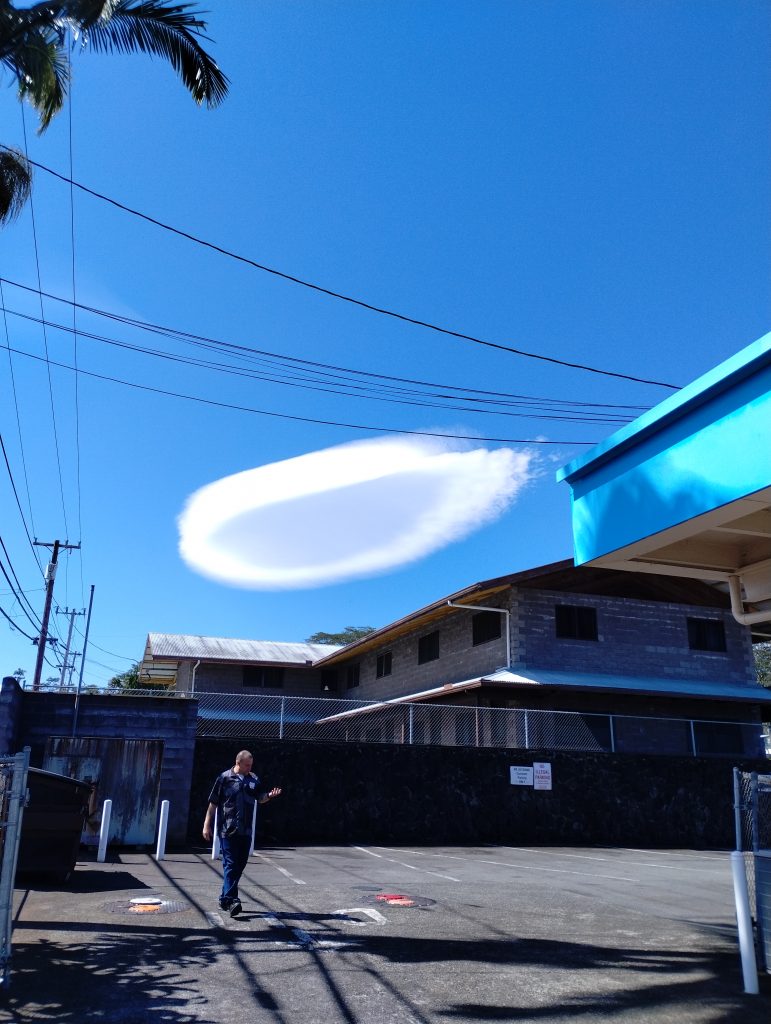 Locals and tourists alike were out and about in a frenzy taking photos of the saucer-shaped clouds. Even the Subaru Telescope, which normally has its sights set on the cosmos above the summit of Maunakea, tweeted a video of a lenticular cloud over its base facility in Hilo.