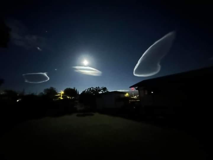 The lenticular loiterers lingered into the night, still high above the island after 9:30 p.m. Wednesday, basking in the bright light of the full moon, stargazing. Or maybe Earth-gazing?