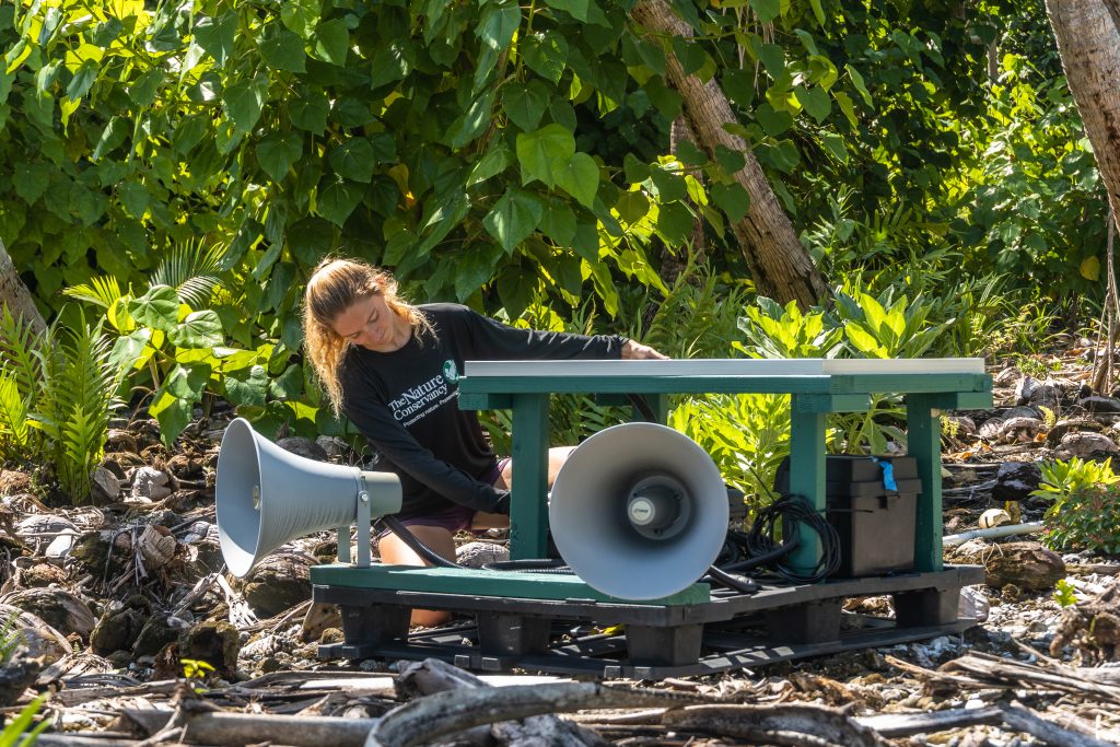 In 2011, rats were successfully eradicated from Palmyra Atoll and in 2020 scientists began deploying social attraction techniques including wooden seabird decoys mimicking colonies and “seabird discotheques” that play the calls 24/7 of the eight absent seabirds.