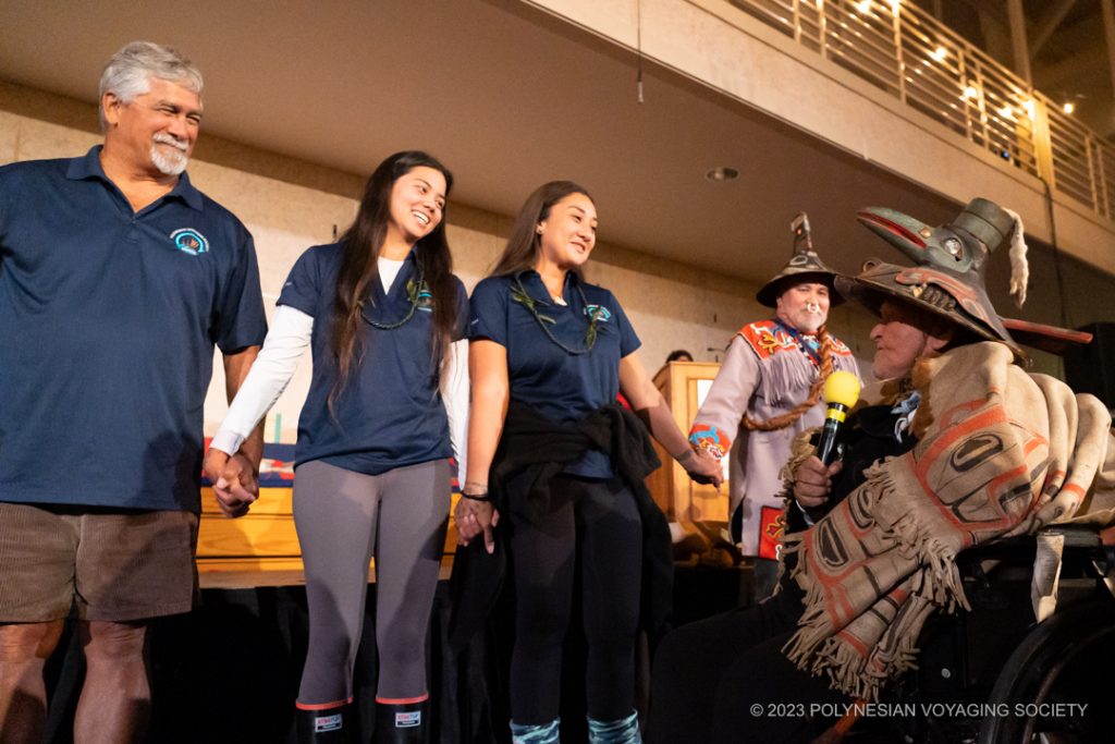 Alaska Native hosts conducted closing ceremonial protocols including dances, songs, words from the elders and indigenous tribes of Southeast Alaska and they presented gifts to Pwo Navigators and Voyaging leadership.