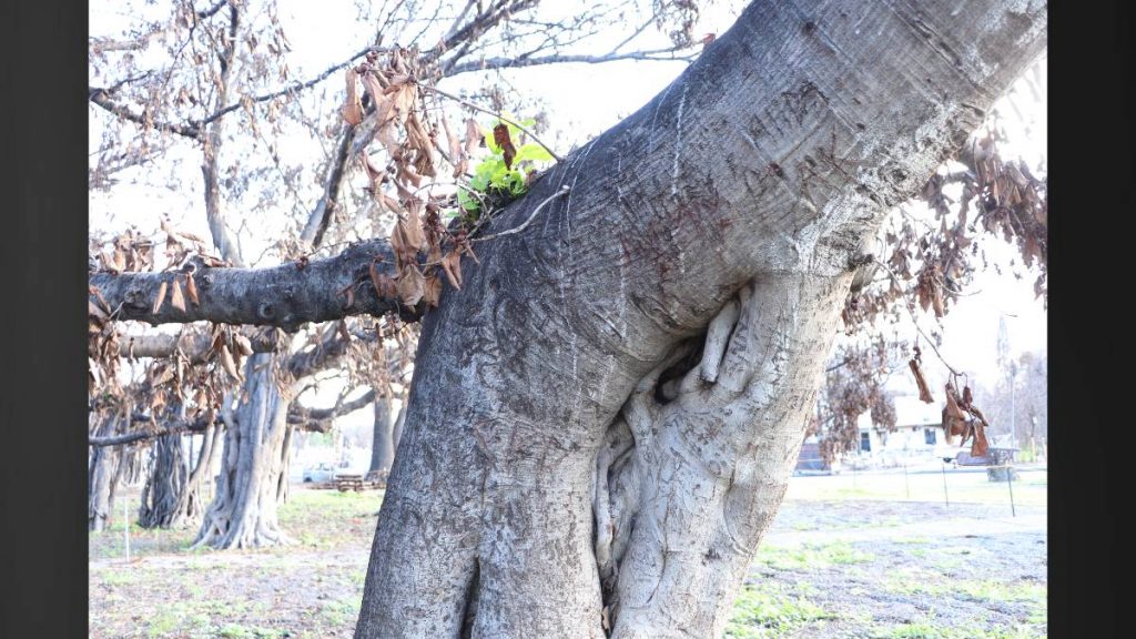 Just weeks ago, the mammoth tree showed no signs of life to the untrained eye.