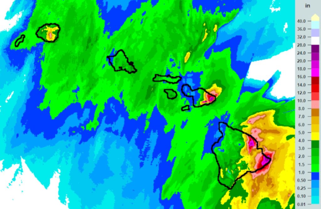 Combined rain gauge and radar rainfall estimates showed 11 to 22 inches over the eastern portions of the Big Island and Maui from Nov. 30 through Dec. 1 before the storm weakened.