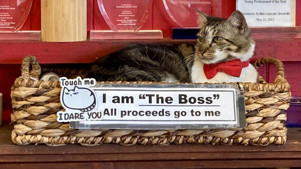 Celeste – who died in 2022 at the age of 19 – was Talk Story’s mascot and overlord, ruling the bookstore from a wicker basket perched behind its cash register. A placard on her basket – now inhabited by her successor Natalie – reads “I am ‘The Boss.’ All proceeds go to me.”