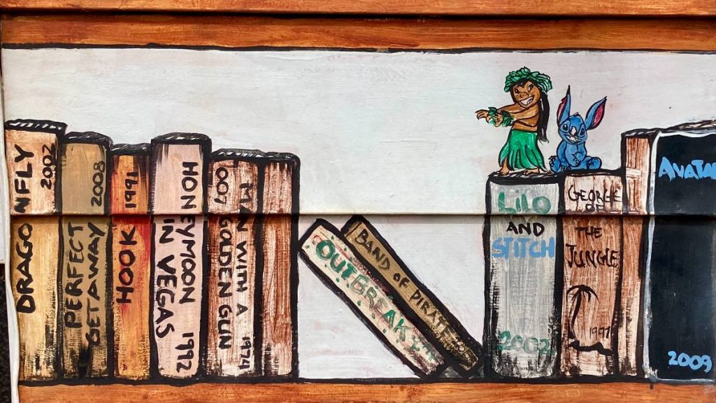 “This was a hidden gem. We came to see the [nearby] Lilo and Stitch mural, and then we stumbled onto this and our kids love books,” said mom Andrea Jensen. “There’s a good variety.”