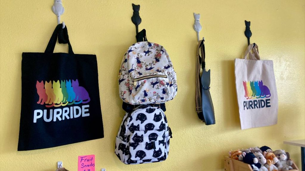 A smaller retail space, located at the entrance to the café, is similarly loaded with feline furnishings – plus plenty of cat-themed merchandise. All profits keep the business going; according to its owners, TropiCats is hardly a money-making endeavor.