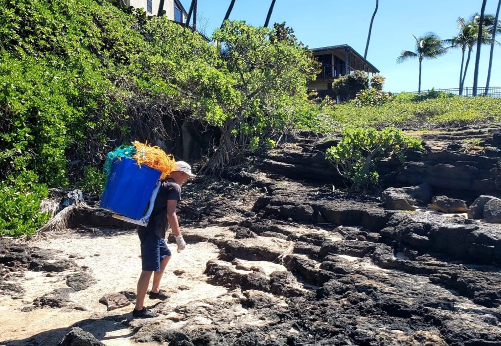 Over the course of the three days, 30 volunteers helped remove more than 2,000 pounds of derelict fishing gear from Po‘ipū coastline, hauling away three truckloads of the marine debris.