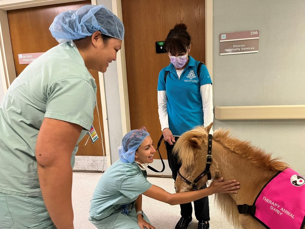 Darby is a gentle, calm and reliable mini horse with a big heart that enjoys interacting with people, all qualities that make him a great therapy animal. He is also unique, as Scully explained that 92% of the therapy animals certified through Pet Partners are dogs.