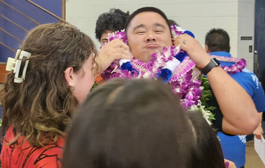 He is a faculty member of the Waiākea High School Freshman Academy, manages after-school tutoring and is a Homecoming advisor, among the other hats he wears outside his classroom. New and veteran teachers alike regularly come to him seeking advice and encouragement.