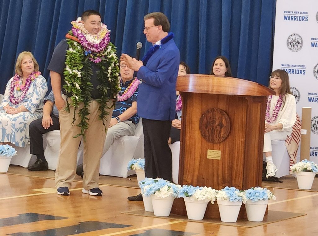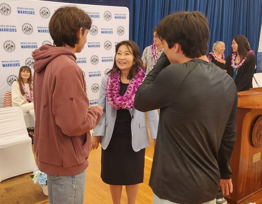 Principal Kelcy Koga, Hilo-Waiākea Complex Area Superintendent Esther Kanehailua and Hayashi shared their pride in the work being done at Waiākea High to ensure graduates find global success and boasted about the continued excellence shown and achievements made by students and teachers.