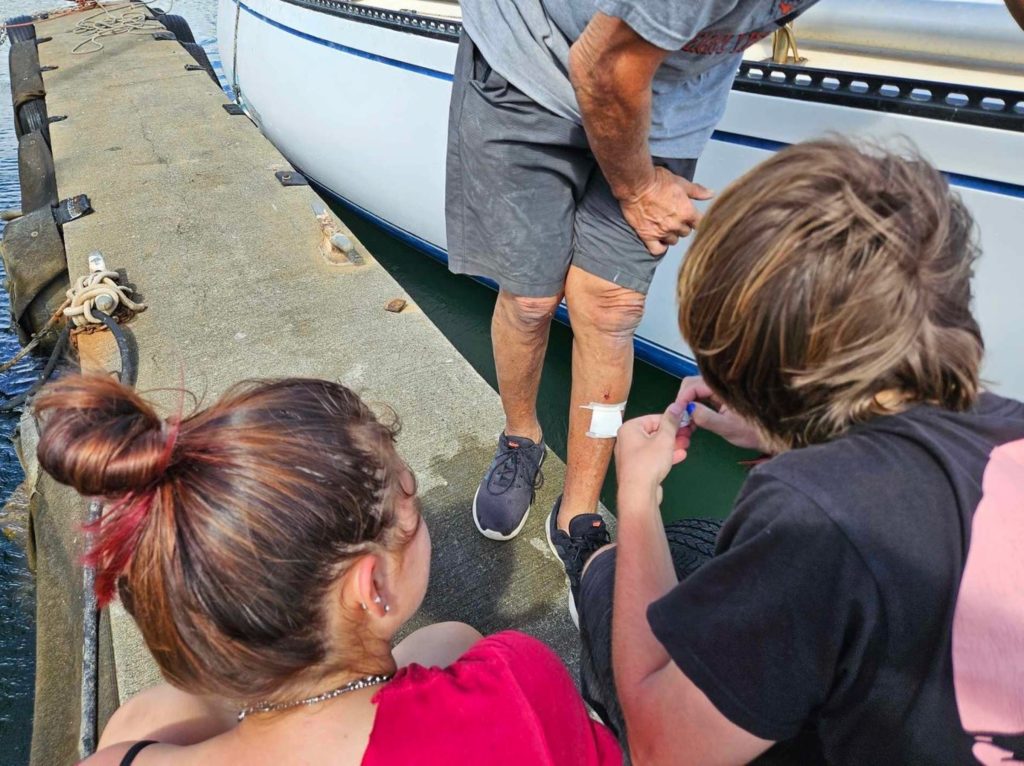 While staying aboard the vessel Decisive during annual small boat training, Scouts saw a nearby sailboat in distress while attempting to dock after missing its approach and being blown onto the rocks.