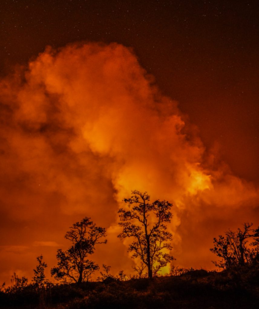 Even from as far away as Kalapana Seaview Estates on the Big Island’s southeast coast in lower Puna, just more than 23 miles from Hawaiʻi Volcanoes National Park, the home of Kaluapele, the volcano’s summit caldera.