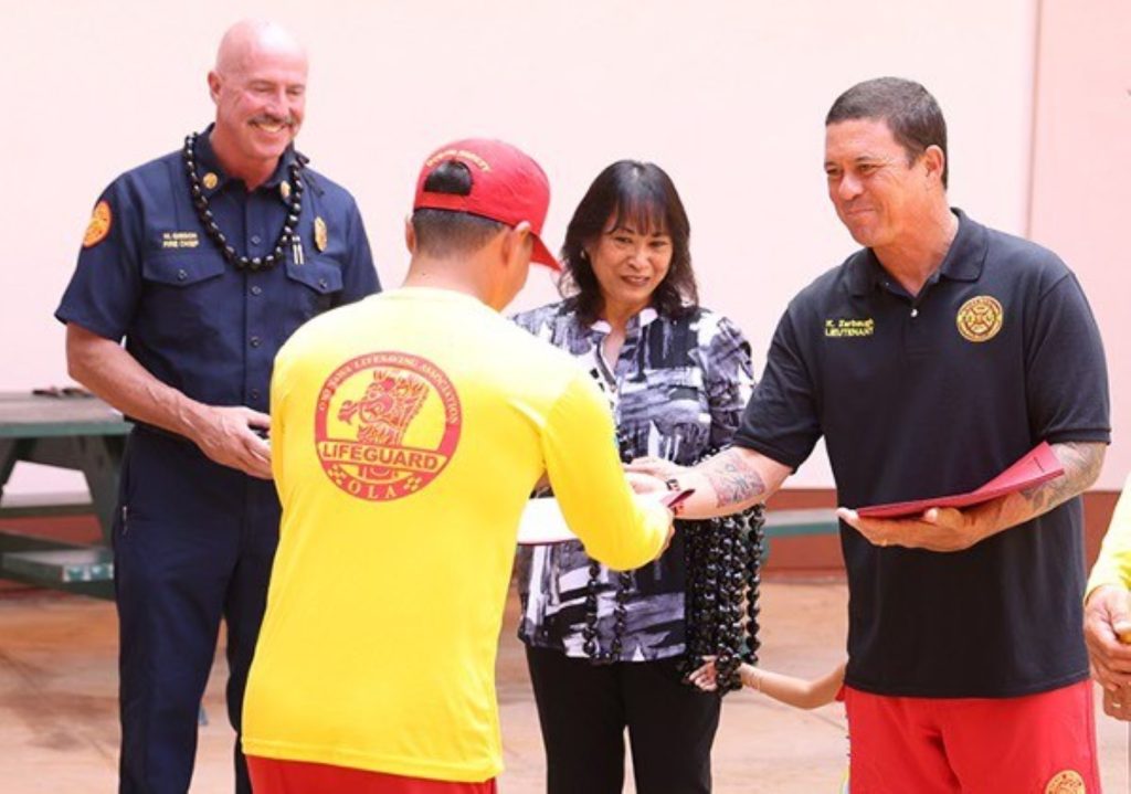 A special certificate ceremony was conducted Feb. 21 at the Mo‘ikeha Rotunda in Līhu‘e to honor the Okinawan lifeguards who completed the program.