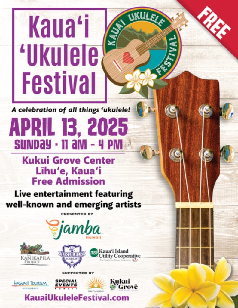Discover the cultural significance the ʻukulele plays as Hawaiʻi’s ambassador of aloha and more during the 2025 Kauaʻi ʻUkulele Festival from 11 a.m. to 4 p.m. April 13 at Kukui Grove Center in Līhuʻe.