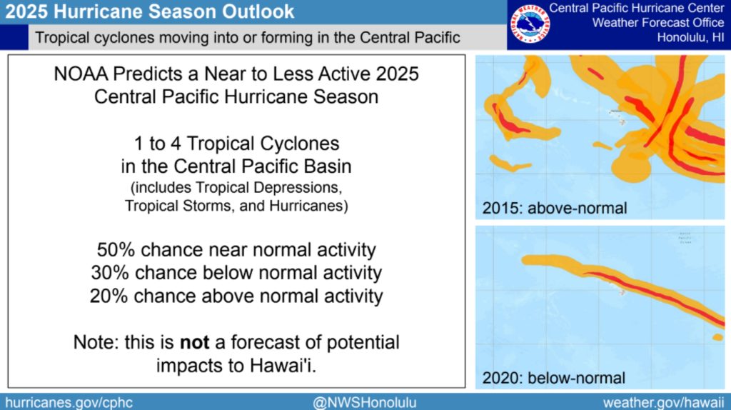 For the Central Pacific Basin, forecasters expect near to below average tropical cyclone activity during the 2025 hurricane season.