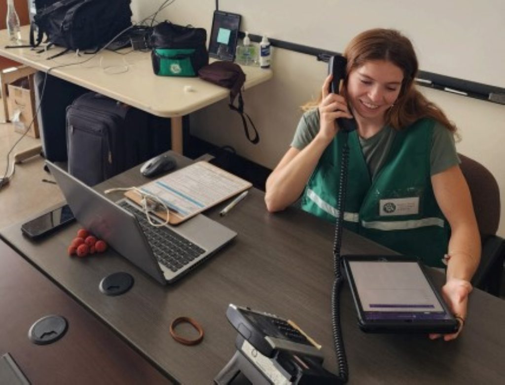 • Survey team staff member completing a survey via the phone at the operations center. (Photo Courtesy: Kauaʻi 2025 CASPER Report/Kauaʻi District Health Office)
