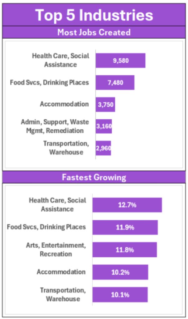 - The accommodation industry is forecast to increase 10.2%, while creating 3,750 positions.