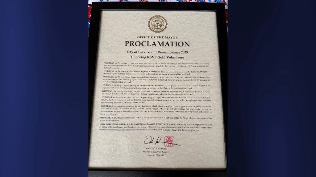 Kauaʻi Gold Volunteers honored with proclamation and awards