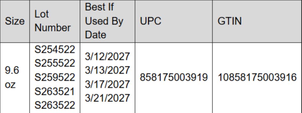 Food and Drug Branch officials advise consumers to verify the recalled product by checking the lot numbers listed above and best-if-used-by date.