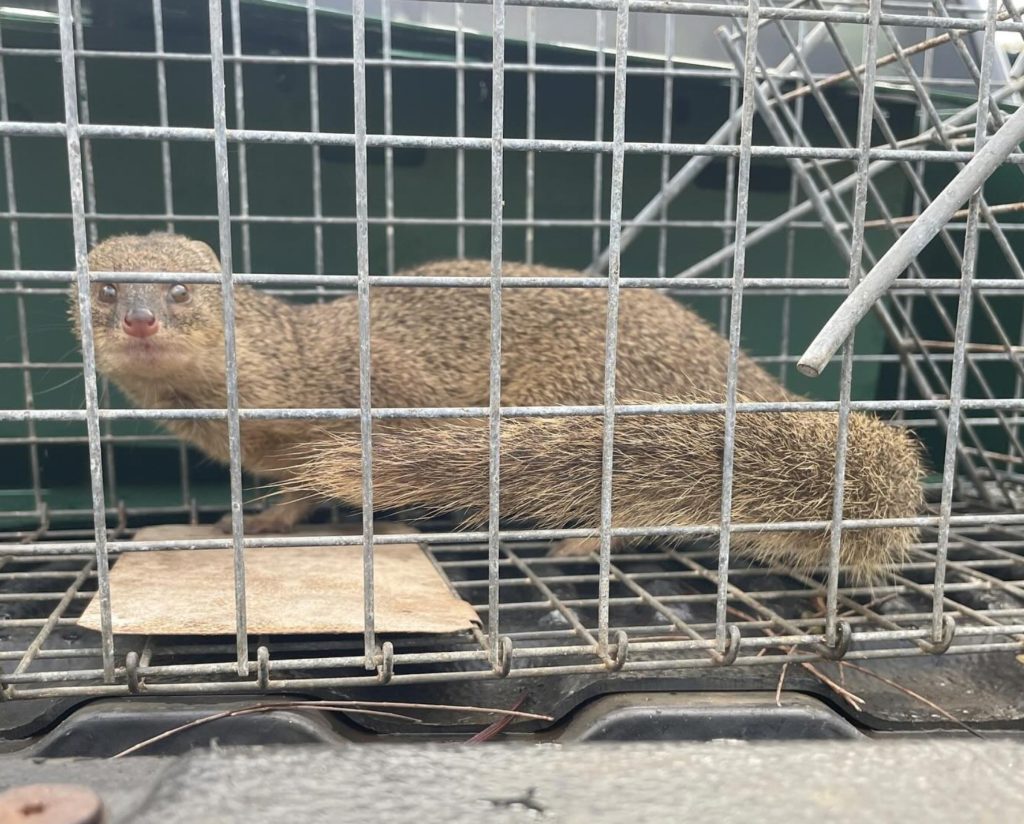 A live mongoose was captured last month on Kauaʻi. The invasive species is not established on the Garden Island.