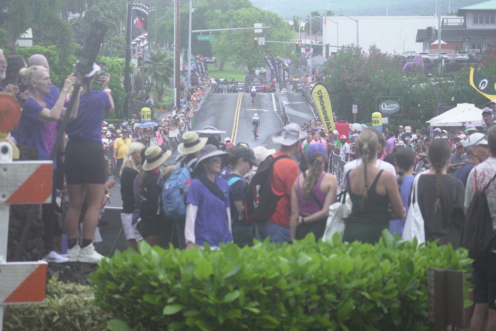 A rainy pre-dawn gave way to overcast skies, as fans packed downtown Kailua-Kona to cheer on their countrywomen and favorite athletes. Charles-Barclay said the cheers will be louder when the women finish the swim course and transition to the bike than at any other time in the race until the very end of the marathon, as the finish line begins to come into view.