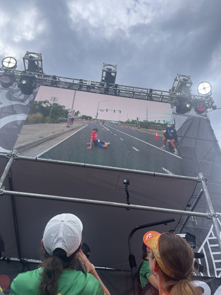 Knibb caught a break in that regard, as Charles-Barclay incurred a yellow-card penalty for unintentional littering. A water bottle popped off of her bike in an area of the course where discarding trash is not permitted. As a result, Charles-Barclay had to stop in a penalty tent alongside Queen Ka‘ahumanu Highway for a full minute, as Knibb furiously pressed her advantage.