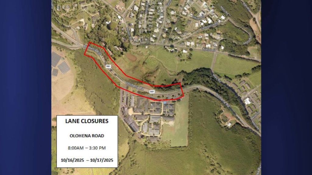 The Kaua‘i Department of Public Works and its contractor, GP Roadway Solutions, will conduct lane closures along portions of Olohena Road on Thursday and Friday.