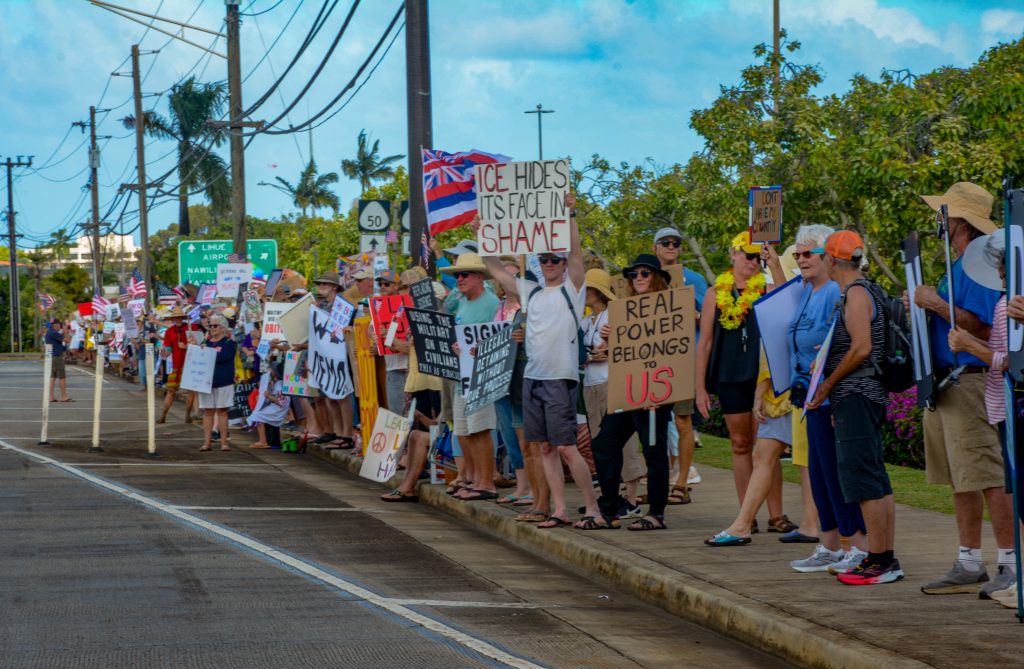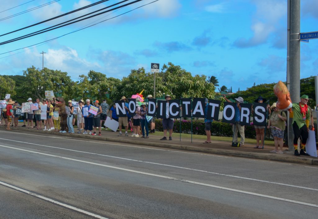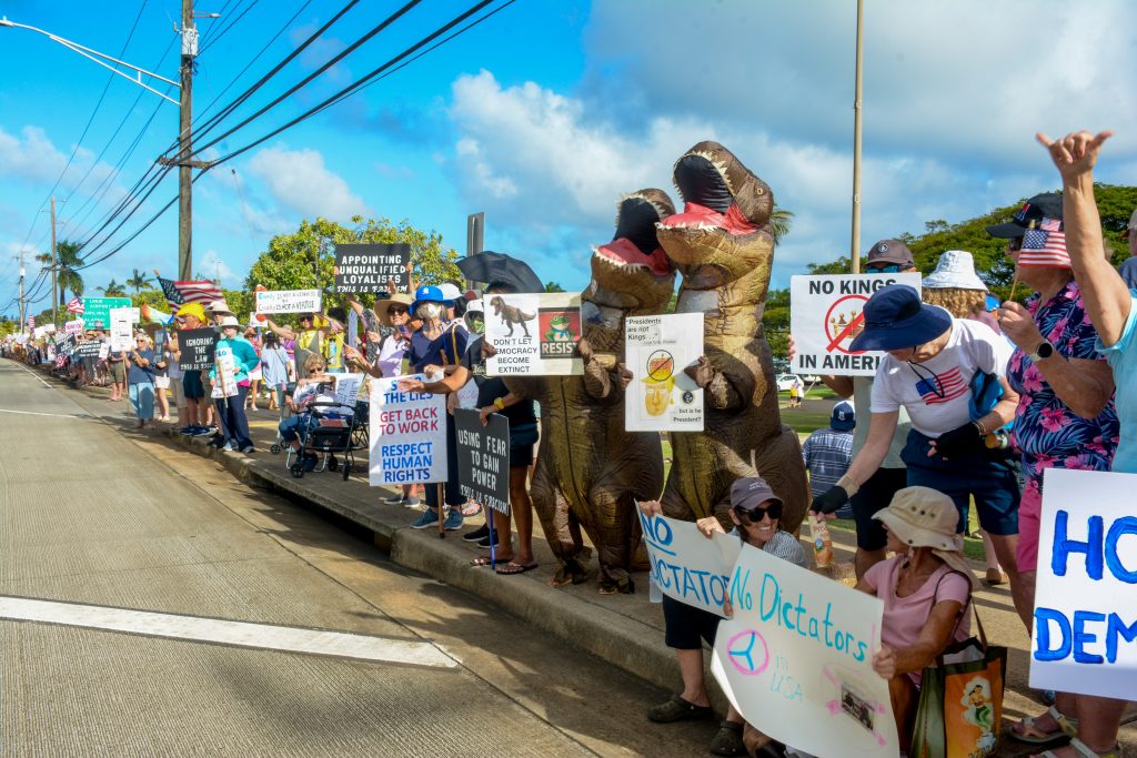 Līhuʻe’s ‘No Dictators’ rally draws 500 as part of nationwide protest against President Trump