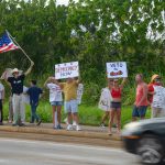 In Līhuʻe, people waved American flags and homemade signs, including one that read: “Make America Humane Again.”