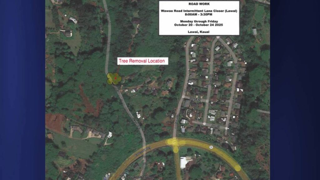 The closures will take place along portions of Wawae Road from Oct. 20 to Oct. 24, from 8 a.m. to 3:30 p.m., weather permitting. Intermittent 15- to 30-minute full road closures will occur throughout the workday, according to a news release from Kaua‘i County.