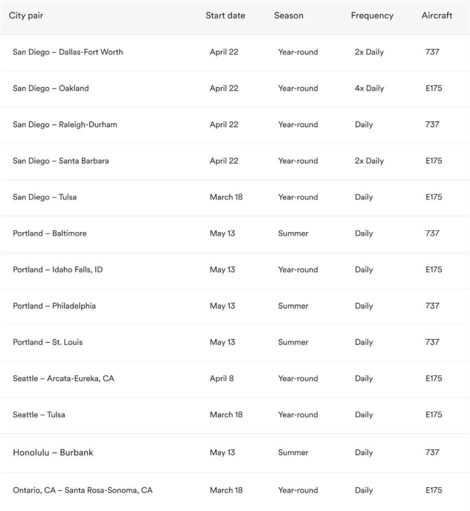 • Along with the additional flights to Portland and San Diego, Alaska has also added a new intra-California flight between Santa Rosa-Sonoma and Ontario, east of Los Angeles.