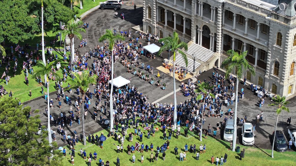 Hundreds gather outside ʻIolani Palace in Honolulu to support Kamehameha Schools. (Courtesy of Kamehameha Schools)