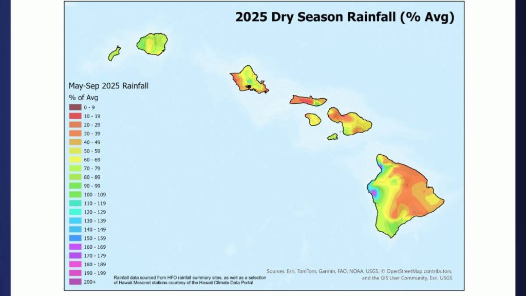 According to the National Weather Service in Honolulu, the rainfall during the dry season, which runs from May through September, was slightly above average on the Garden Isle, while less rain was seen on the Big Island, O‘ahu and Maui County.