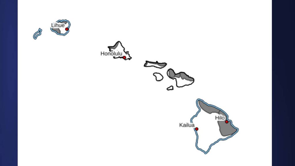 Forecasters also say minor coastal flooding during peak monthly high tides in the early morning hours this week is possible for low-lying coastal areas on all Hawaiian islands.