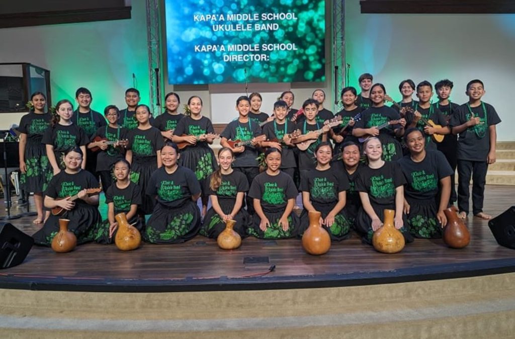 Visit the Kapa’a Middle School website for more information about Kapa‘a Middle School Choir and ‘Ukulele Band, including its upcoming events.