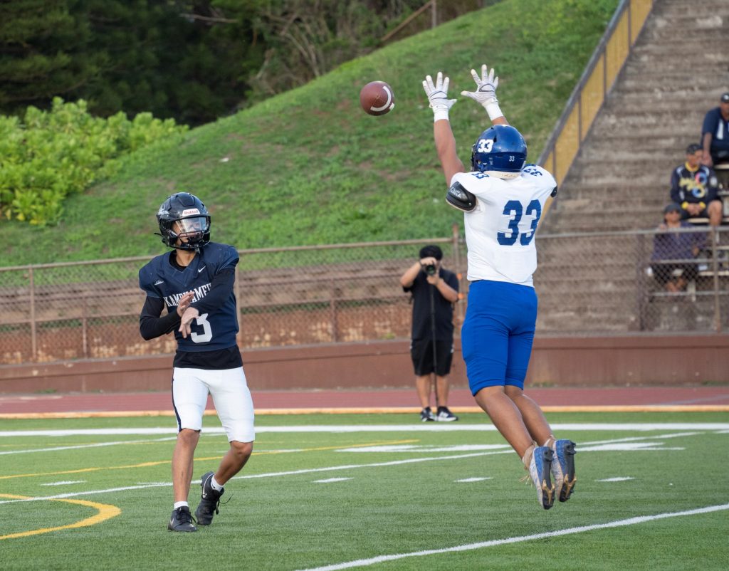 Kamehameha Maui sophomore quarterback Kekoa Keau-Davis passed for 76 yards and two touchdowns as well.