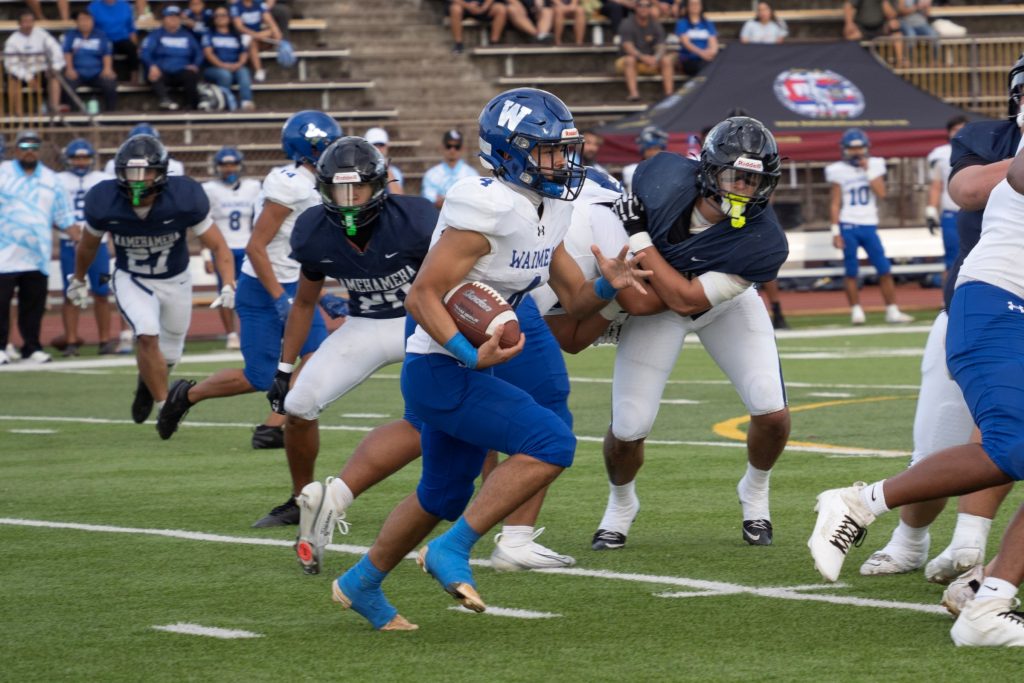 Waimea sophomore running back Kaikea Miyashiro ran for 39 yards to lead the rushing attack. Waimea had more first downs than Kamehameha Maui 14-12 and the Menehunes out-gained the Warriors 288 yards to 272.